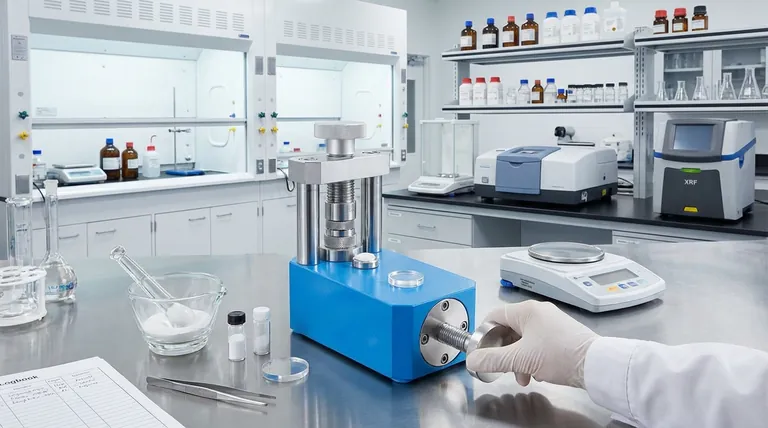 Для подготовки образца порошкообразный материал часто прессуют в плотную твердую таблетку. Это создает однородную плоскую поверхность, которая гарантирует, что рентгеновские лучи прибора равномерно облучают образец, что приводит к точному и воспроизводимому измерению присутствующих элементов.