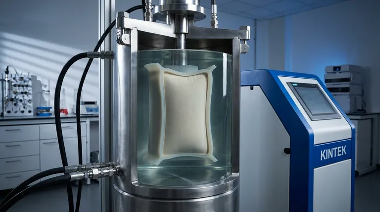 Однородность, достигаемая при изостатическом прессовании холодным способом (ИВП), основана на одном фундаментальном принципе: приложении равного, одновременного давления со всех направлений. Это возможно, поскольку деталь, обычно представляющая собой порошок, помещенный в гибкую форму, погружается в жидкость, которая затем подвергается давлению. Согласно закону Паскаля, это давление одинаково передается по всей жидкости, гарантируя, что каждая часть детали уплотняется в одинаковой степени, что приводит к исключительно однородной плотности и прочности.